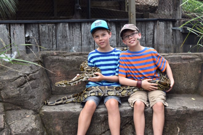 It is Tuesday and we are heading to the zoo. The zoo that we are going to is smaller than Steve Irwin’s place but the 2 zoos have a lot of the same animals. There were the cutest wallabies on hay and rocks. We watched a reptile show where they brought out a croc that we got to pet. They let us have a picture with a giant Python that wrapped around us. I had a great day!!! The next day we took a ferry to my aunt’s house. We were there for 2 hours and swam most of the time. One of my favourite thing there was a chubby cat named Poppy. After she drove us to the ferry and we went back home.